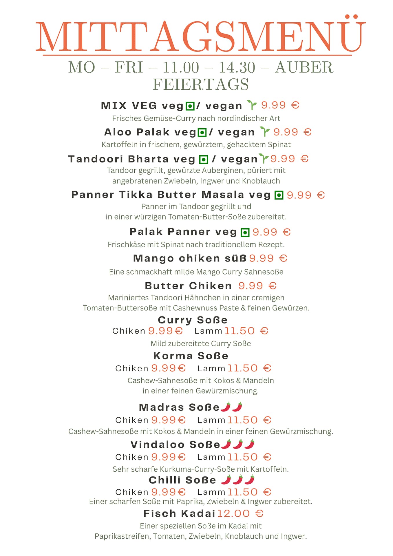 Whether you prefer something mildly spiced or boldly seasoned, our Tandoori and Grill dishes bring you the true essence of Indian cuisine—fresh, fiery, and full of character.